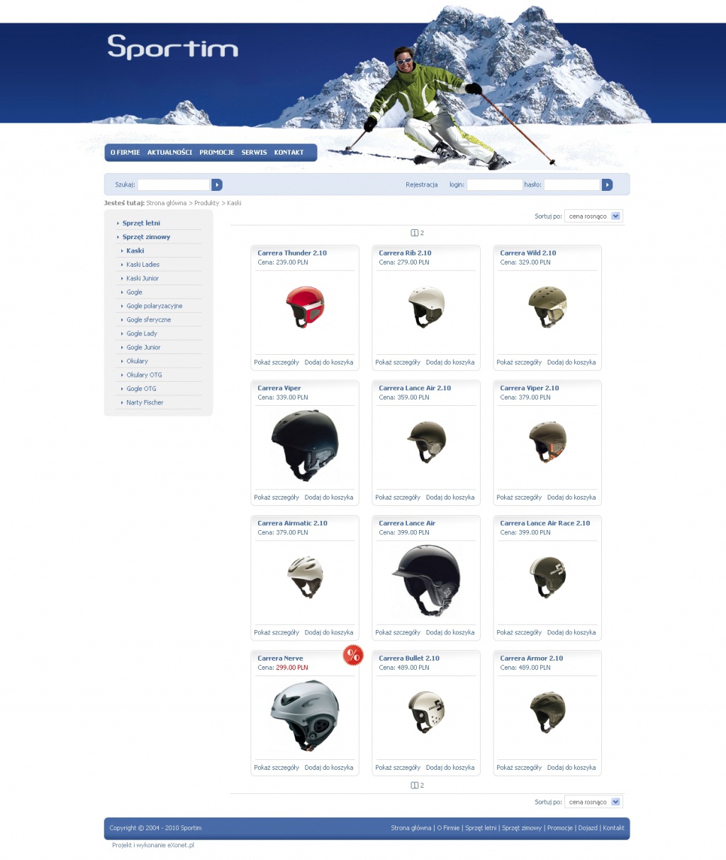 Opis: Sportim jest firmą zajmującą się handlem sprzętu sportowego. Na rynku istnieje od ponad 15lat. Swoim użytkownikom udostępniła możliwość kupowania produktów poprzez internet. Opcja ta jest dostępna tylko dla zarejestrowanych użytkowników.