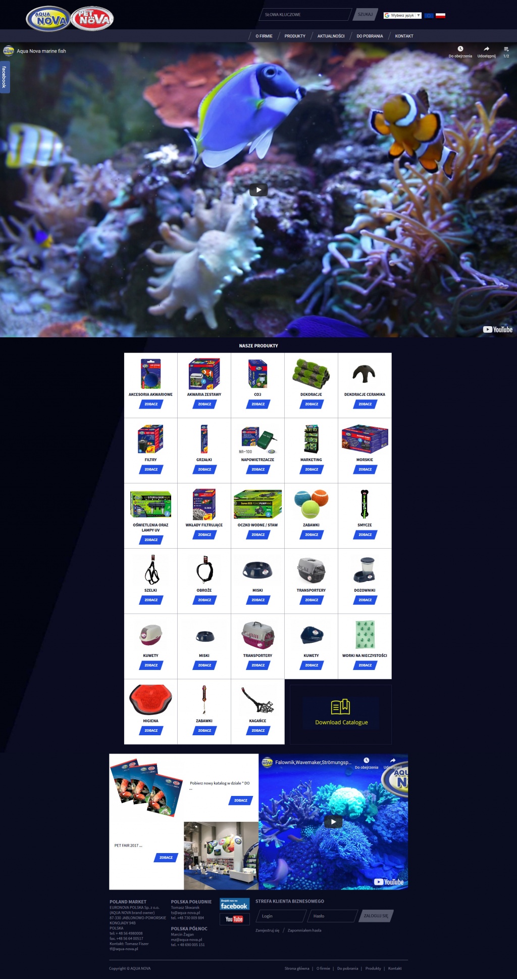 Opis: Aqua Nova jest firmą zajmującą się handlem sprzętu wodnego. Na stronie prezentuje swoje produkty podzielone na kategorie i podkategorie.