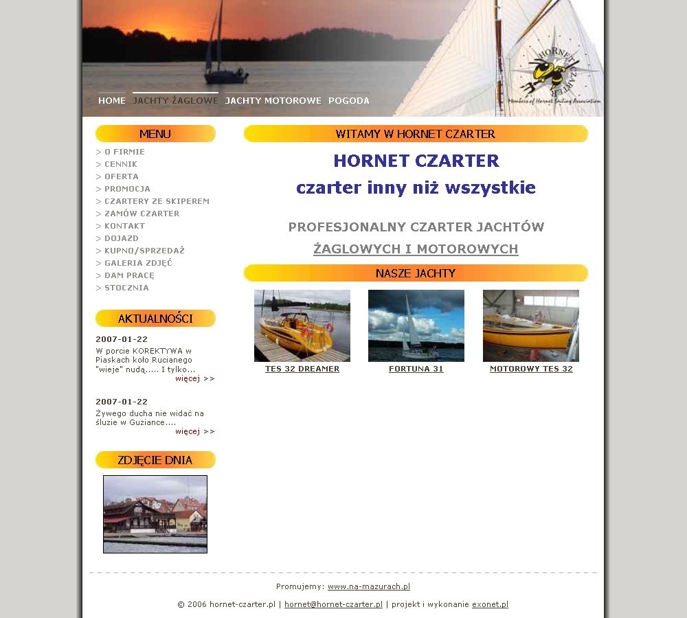 Wykonaliśmy witrynę dla firmy Hornet Czarter.